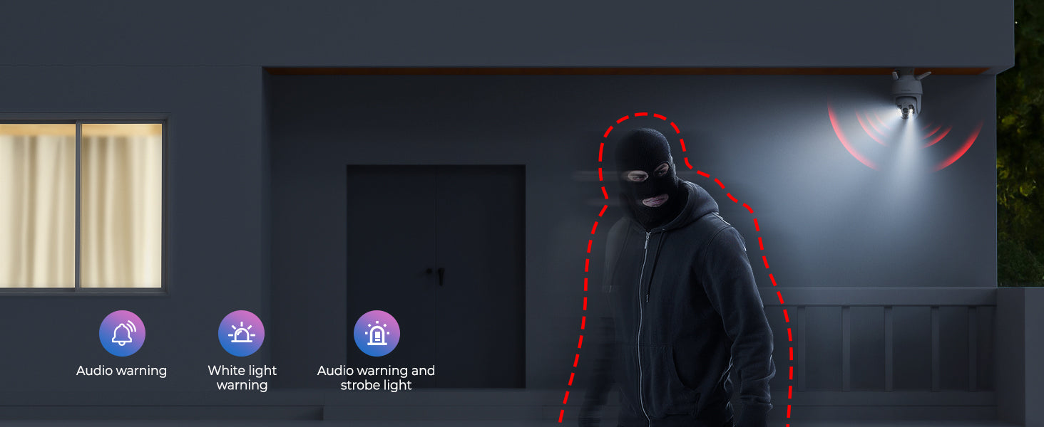 TMEZON,3MP WiFi Outdoor Security Camera offers you ideal out camera solution that integrates features of humanoid detection, auto tracking, color night vision, 2-way audio, light defense, PTZ, auto cruise, IP66 waterproof etc.